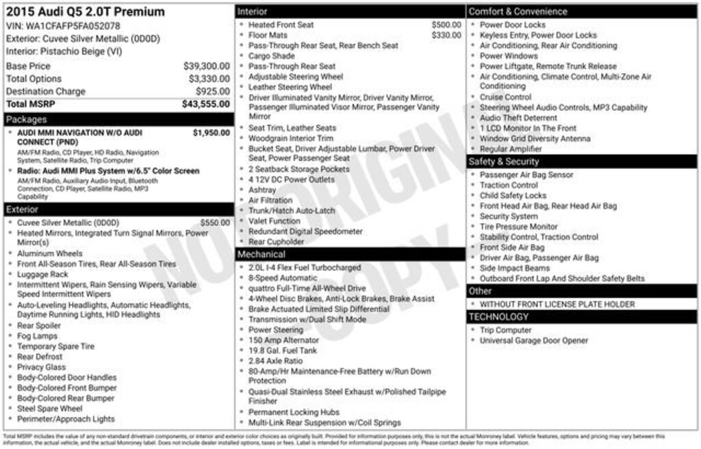My 3rd Audi and I've loved them all. I fell in love with the body style of the 2015 Q5 and searched for THE one in lieu of getting the new 2018. I've been driving it nearly 3 years and am still as happy as day one. It gets great gas mileage, accelerates and handles almost as fun as my TT and has been extremely reliable. The interior is understated but classy with an edge; the instrument panel and all the buttons light up at night, making it feel state of the art. Of course, the sound system is superior and I love the convenience of bluetooth, navigation and more. I noticed in one of the "professional" reviews that it was dinged for lack of cargo space; however, I find that even with 3 grandkids in the back (all in child safety seats) and a front passenger, that there's still plenty of room in back for the kiddos' overnight bags and some weekend groceries. I am a furniture artist and frequently pick up antique pieces; with the back seats down, people are always amazed at what I am capable of loading it up with. Of course, scheduled maintenance is pricey but I know to expect that and always feel confident that unexpected repairs will be few and very far between. At 80K I've yet to have a single issue, not even a broken knob or rattle inside or out. Which says a lot considering I live outside the city and regularly drive on not-so-great country roads. My one and only minor complaint is cabin noise but it's mostly wind which is always blowing like crazy around here. All-in-all, I am as pleased with this Audi as the others I have had in the past and feel confident that my next car will be an Audi as well.… - 3.0