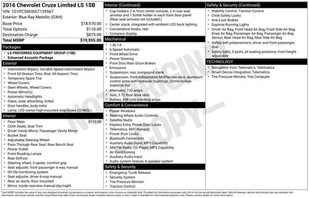 Pre-Owned 2016 ChevroletCruze Limited LS Auto Front-wheel Drive Sedan