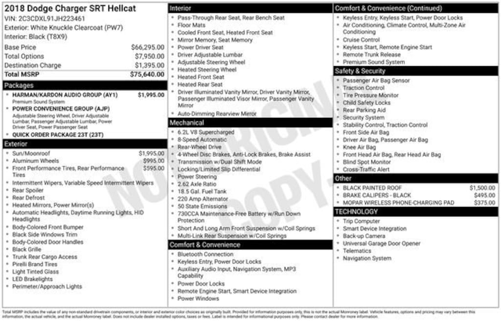 Clean CARFAX. White Knuckle Clearcoat 2018 Dodge Charger SRT Hellcat RWD 8-Speed Automatic 6.2L Supercharged HEMI V8 SRT