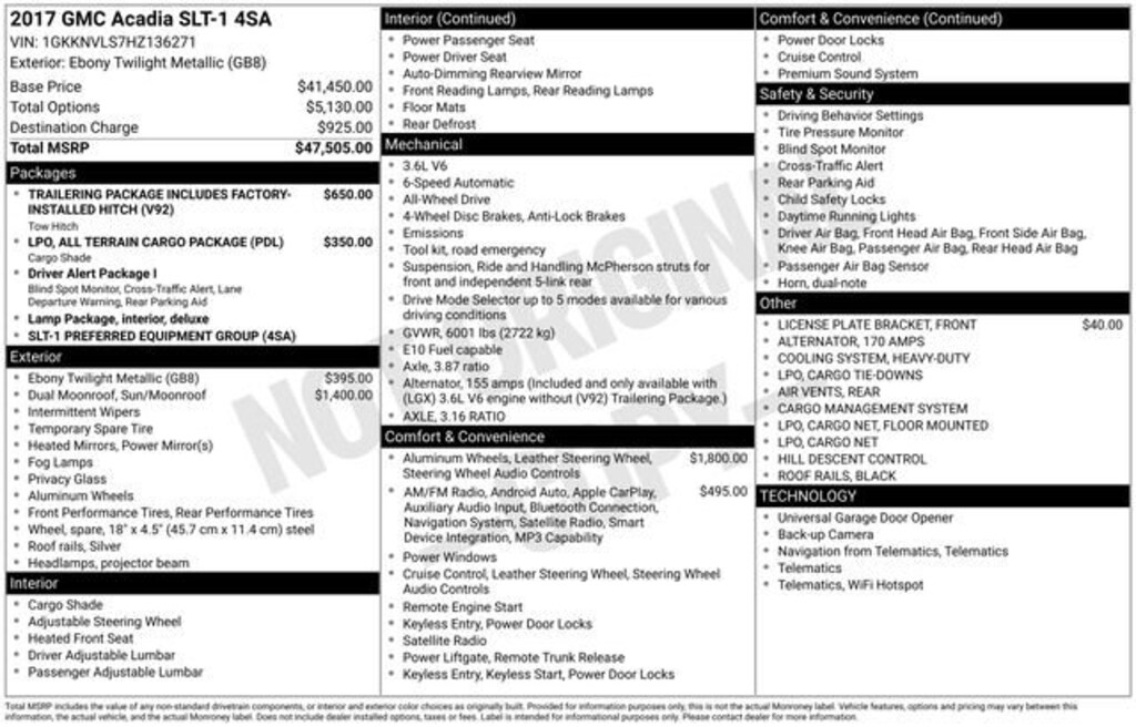 Pre-Owned 2017 GMCAcadia SLT-1 All-wheel Drive SUV