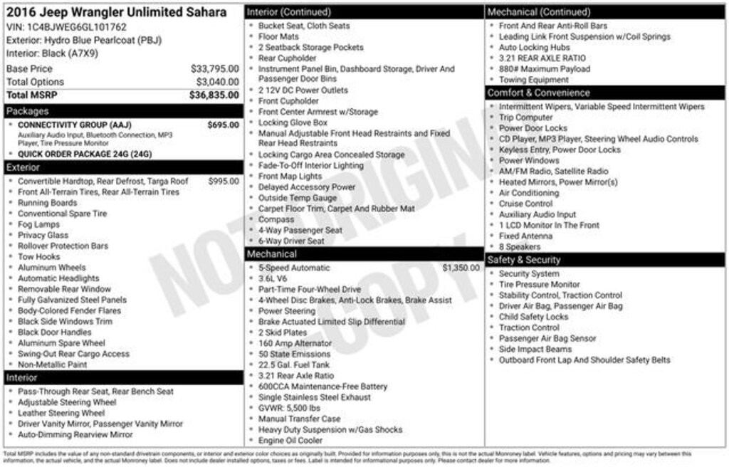 Pre-Owned 2016 JeepWrangler JK Unlimited Sahara 4x4 4x4 SUV