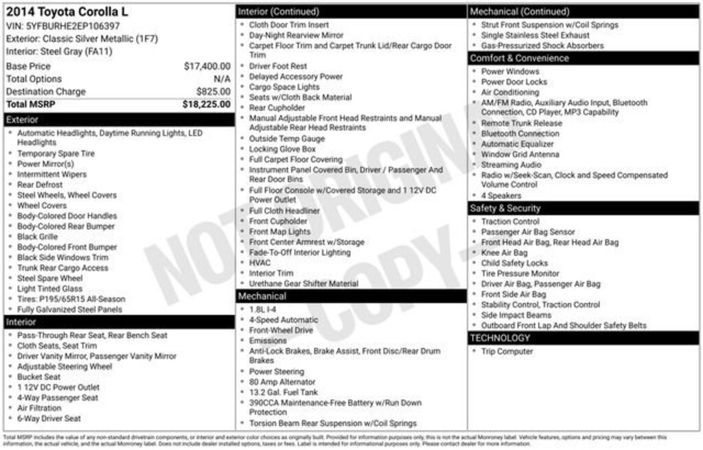 Pre-Owned 2014 ToyotaCorolla L Front-wheel Drive Sedan