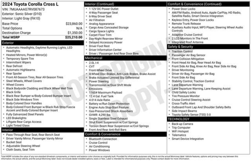 I’ve had my L model for about three months. Here’s what I like about it, I’m getting 39.2 to 39.7MPG with approximately 75% highway and 25% city. The seats are very comfortable, more so than the Kia Sorrento’s I previously had the vehicle handles very well. Has a very smooth ride and excellent cargo space. The CVT transmission is adequate and time will tellbut personally, I’d rather have a standard transmission. Acceleration is acceptable for daily driving, but I don’t put my foot into it very often. Here’s what I don’t like. The L model does not even have the following: automatic headlights (you have to turn the lights on off), no rear window wiper, no auto-adjusting rearview mirror, no adjustable intermittent wipers (only one speed). What I don’t like is the auto stop start function. I hate it. Although there is a button on the console to turn it off, but I often forget to do that. I believe the default on that feature should be off and if I want to use it, then I turn it on. I also detest the forward collision feature as it won’t let me gently coast up to the vehicles in front of me. As soon as I let off the gas, it starts applying the brakes and believe me I’m not going fast and I have plenty of distance in front of me, I have it adjusted to the closest and it still applies the brakes way before needed. this will cost me to get a brake job way too soon. It uses 0W8 motor oil and Toyota says you can go 10,000 miles between oil changes but I won’t be doing that. I’ll change it myself at 5000 and take advantage of the dealers free oil changes up to 25,000 miles. The transmission gets its first service at 60,000 miles. Hope this is informative for you.… - 5.0