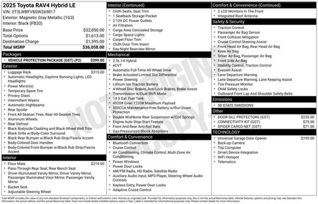 CARFAX One-Owner. Clean CARFAX. 01g3 2025 Toyota RAV4 Hybrid LE AWD eCVT 2.5L 4-Cylinder